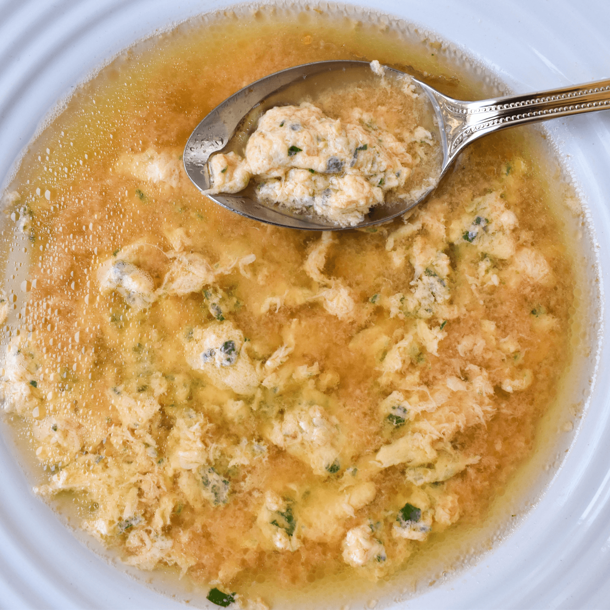 Chicken broth with fresh spinach, carrots, shredded chicken breast and egg drop!