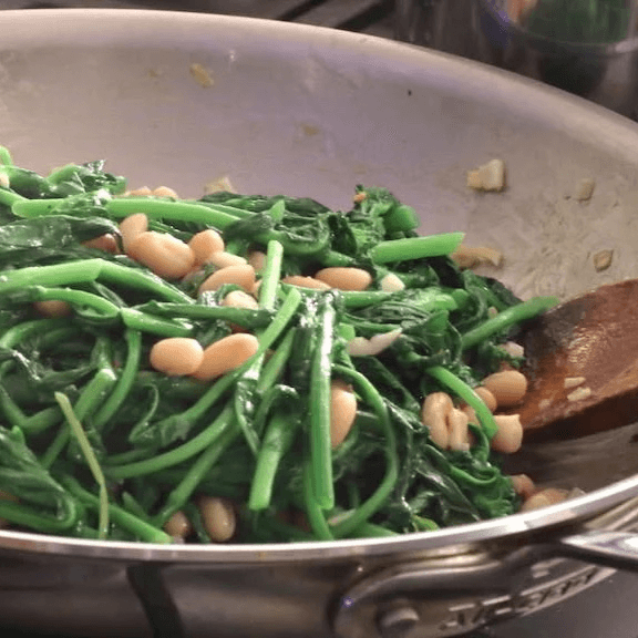 Broccoli rabe with oil, garlic, cannellini beans, with a touch of red pepper flakes