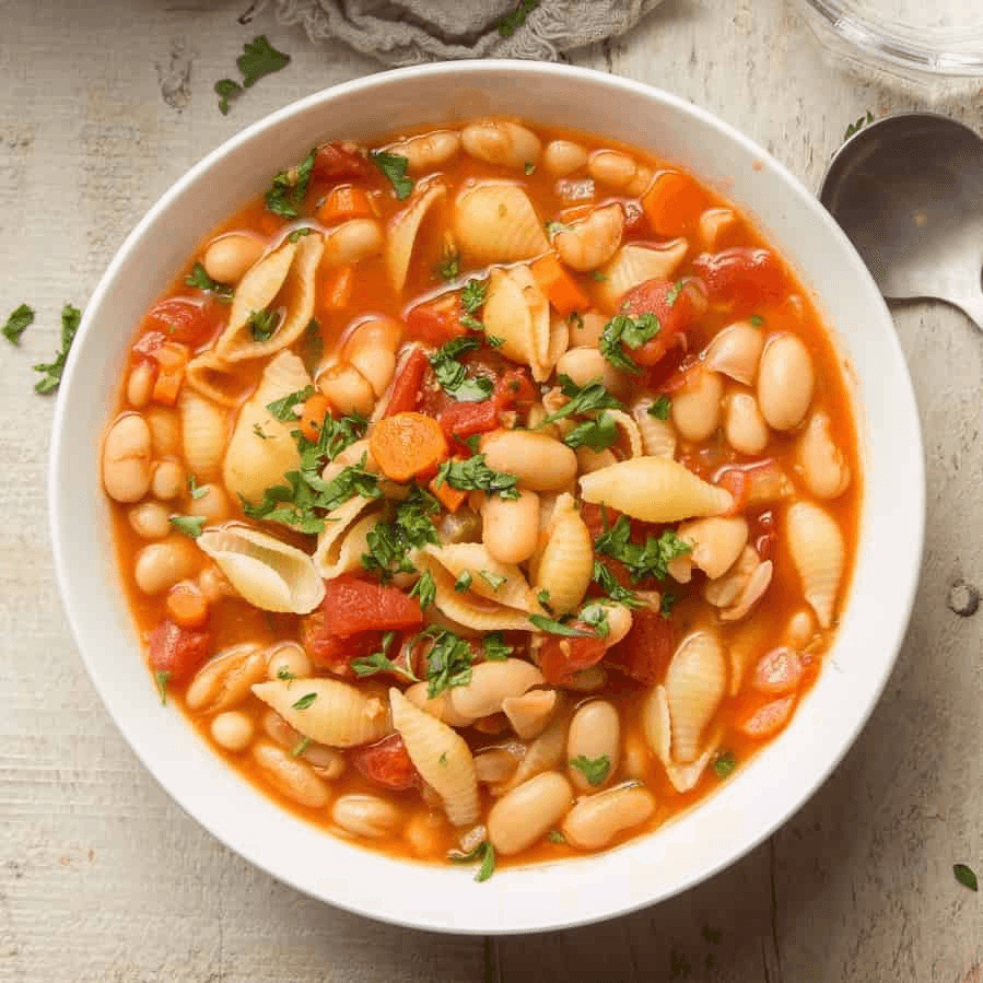 Traditional pasta and beans recipe handed down generationally, choose the classic red or lighter white