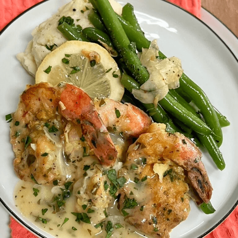 Egg-battered shrimp sautéed in a lemon butter white wine sauce