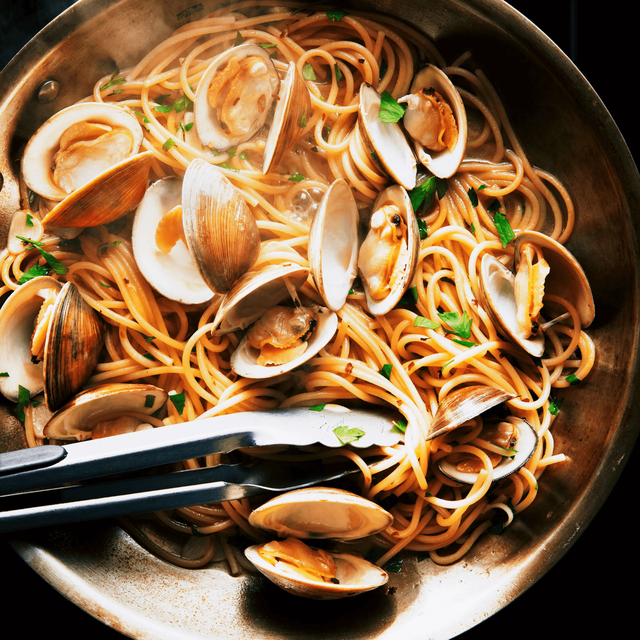 Linguine with clams, white wine, garlic, olive oil, and parsley or choose a red fresh plum tomato marinara